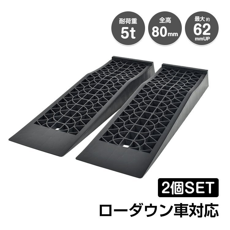 > カースロープ 2個セット タイヤスロープ タイヤ止め スリップ防止 耐荷重約5t 坂の角度8.5° ローダウン車対応 最大約62mmUP ee362