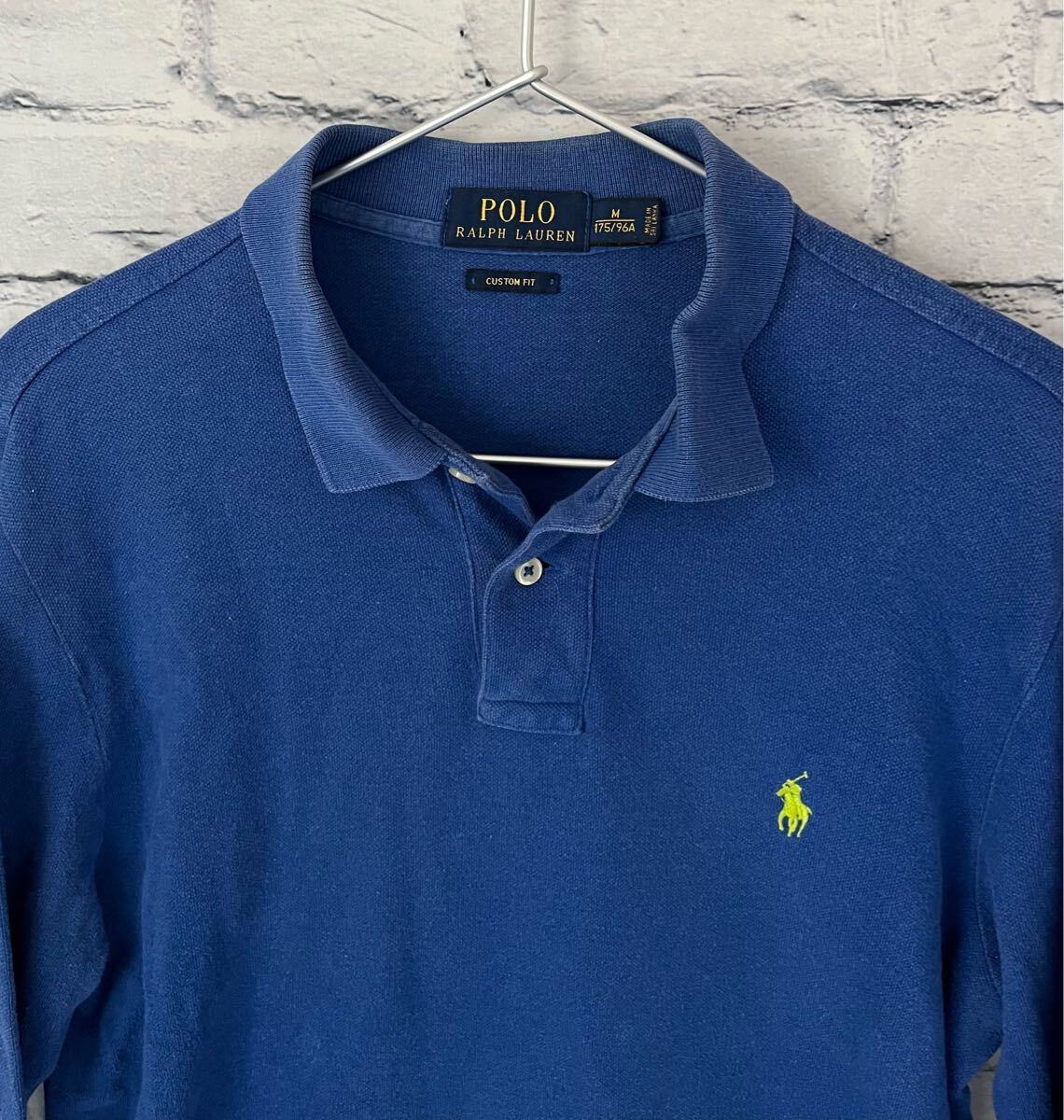 - RALPH LAUREN ラルフローレン長袖ポロシャツ青Mサイズ中古 (管NO1153)