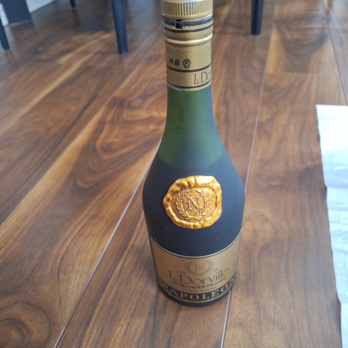 - フランス産 L.Dorville製 Napoleon ブランデー、金色のラベルとエンブレムが特徴。ナポレオン ブランデー