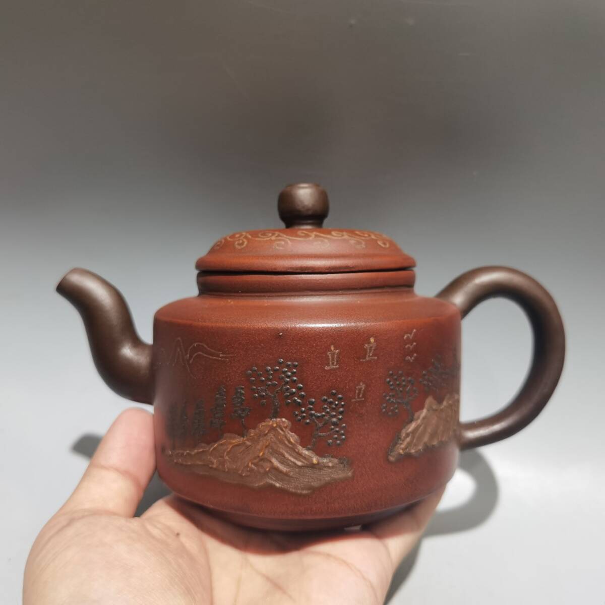 - 蔵友旧蔵出 紫砂壺 泥繪德鐘壺 時大彬款 原礦紅泥 茶道品 煎茶道具 文房賞物 希少珍品