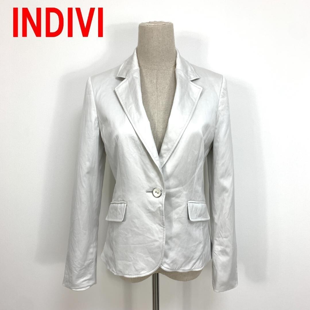 - A5785 インディヴィ テーラードジャケット 綿 裏地あり INDIVI コットン ライトグレーグレー 40