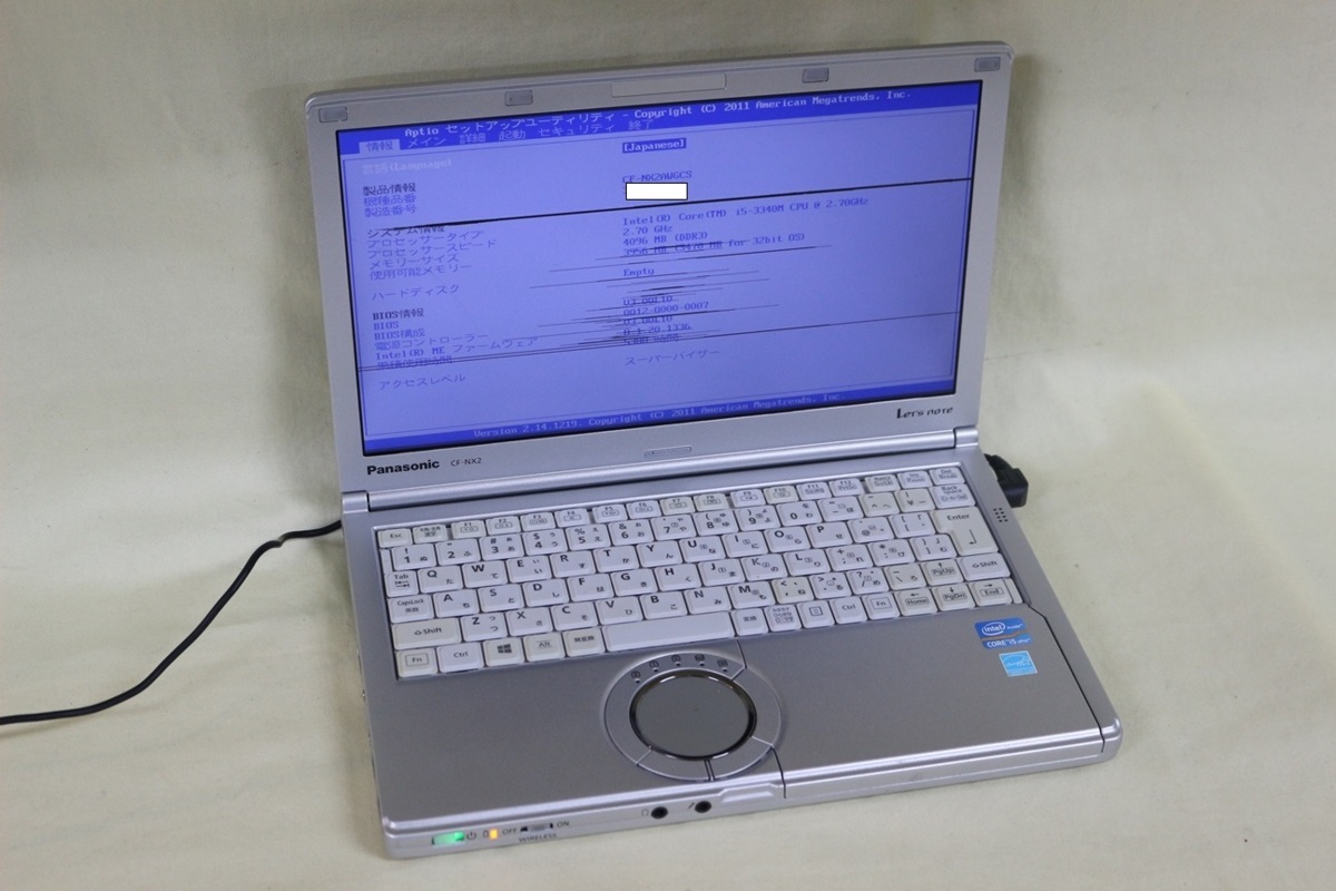 > ジャンク品ノートパソコン Panasonic Let's note CF-NX2 COREi5 メモリ4GB HDD無 12.1inchワイド 起動確認済 代引き可