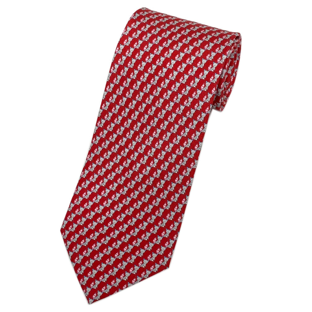 - 未使用 フェラガモ ブランド ネクタイ サルヴァトーレ・フェラガモ シルク 100% アニマル レッド ライトグレー 赤 41213