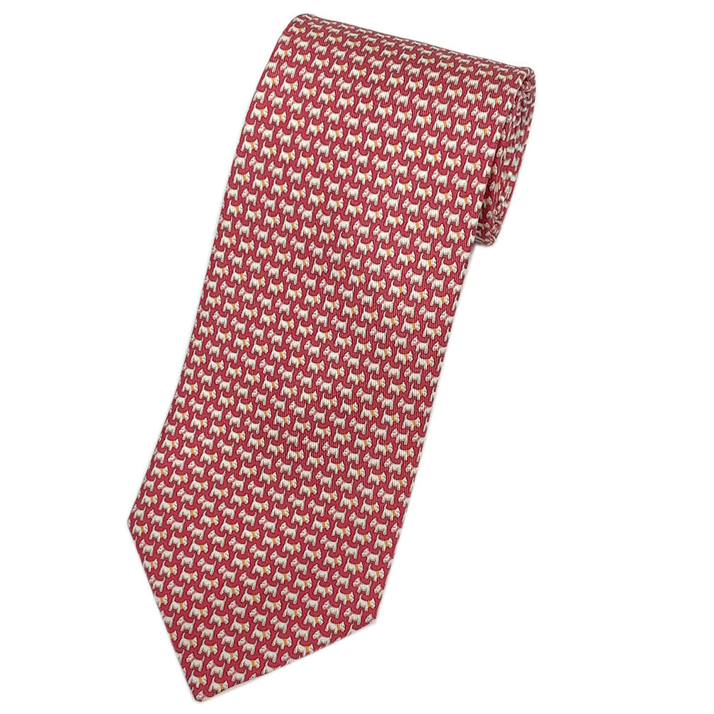 - 未使用 フェラガモ ブランド ネクタイ サルヴァトーレ・フェラガモ シルク 100% アニマル ドッグ 犬 ピンク オレンジ 41214