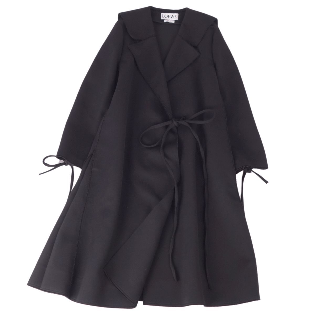 > 極美品 ロエベ LOEWE コート ロングコート ウール オーバーシルエット アウター レディース イタリア製 36 ブラック ce04dt-rm10e30770