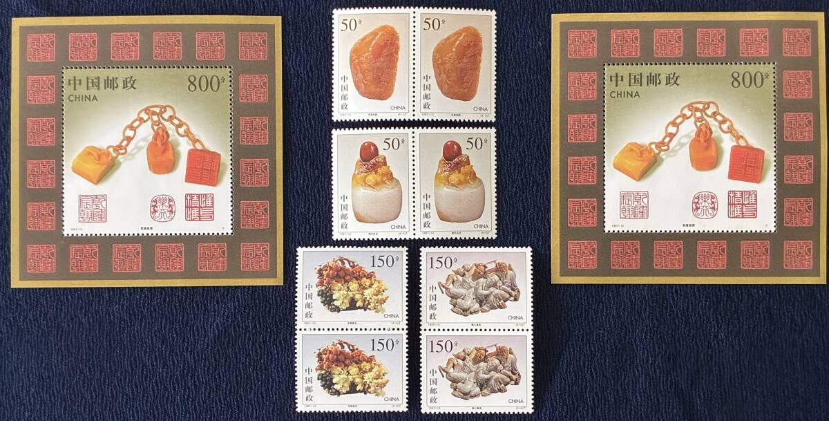 - 新中国切手ー未使用 1997-13T 寿山石彫刻 4種完ペア 1997-13TM 寿山石彫刻小型シート2シート