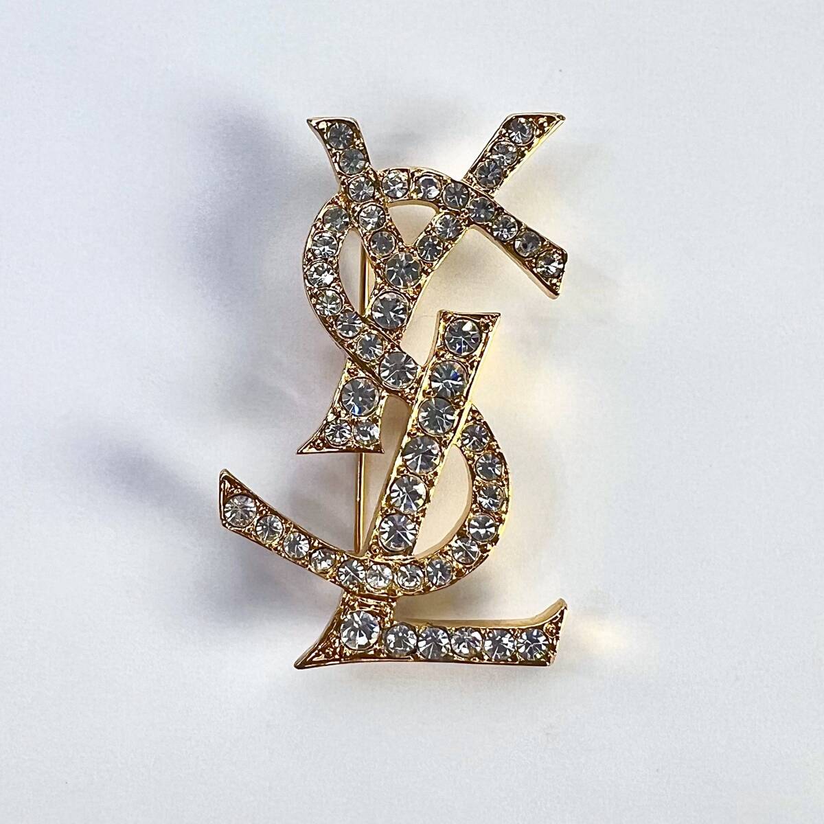 - Yves Saint Laurent イヴ・サンローラン ロゴ ラインストーン ブローチ ゴールド GP レディース アクセサリー 美品