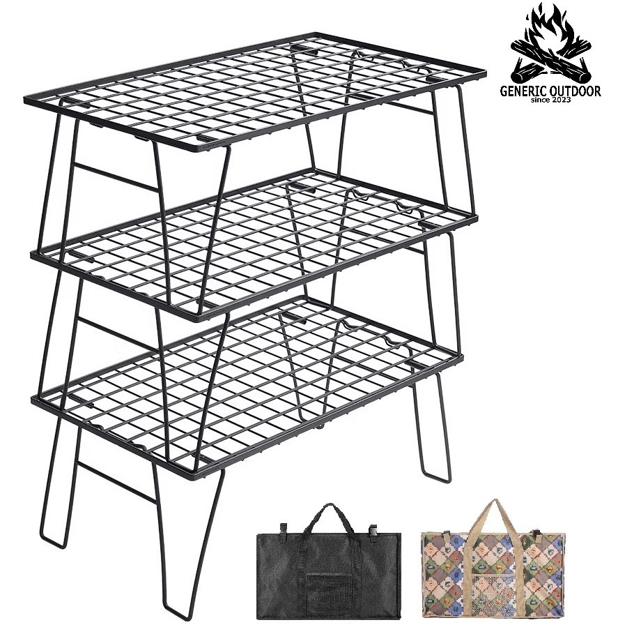 > GENERIC OUTDOOR マットブラック フィールドラック 3点ケースセット F003TB アウトドフィールドラック アイアンラック アウトドアテーブル6