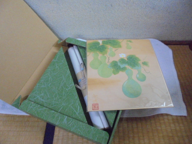 - 縁起色紙-専用掛け軸付-/六瓢息災-開運色紙/島田智博 画伯 作-真作/箱入未使用美品