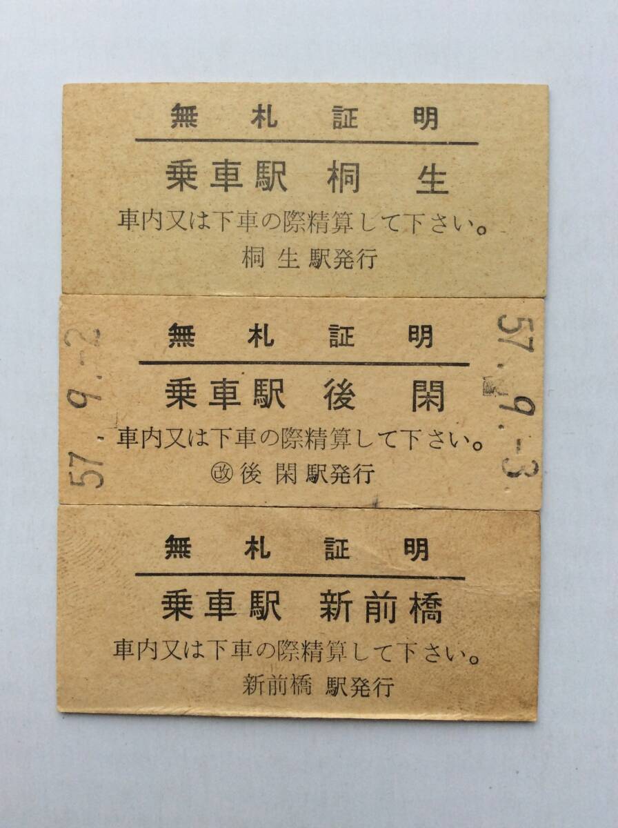 - 国鉄 無札証明 桐生駅 後閑駅 新前橋駅 3枚一括