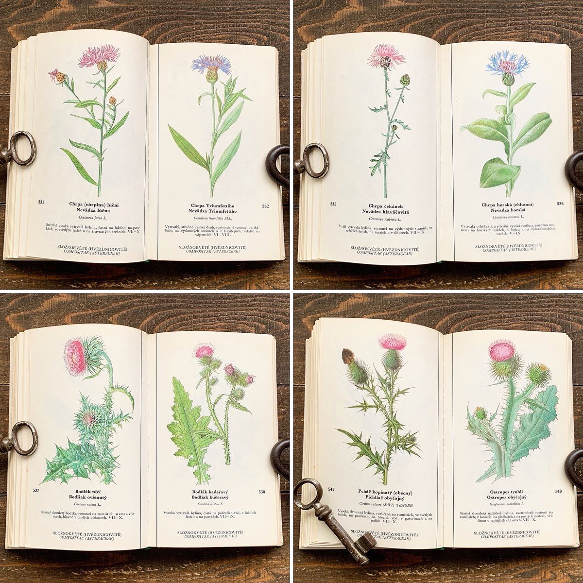 > [698種類の植物画]チェコの古い植物図鑑2冊セット(NASE KVETINY Ⅰ Ⅱ 1973年)/アンティーク ヴィンテージ 植物画 花 ボタニカル 雰囲気◎/