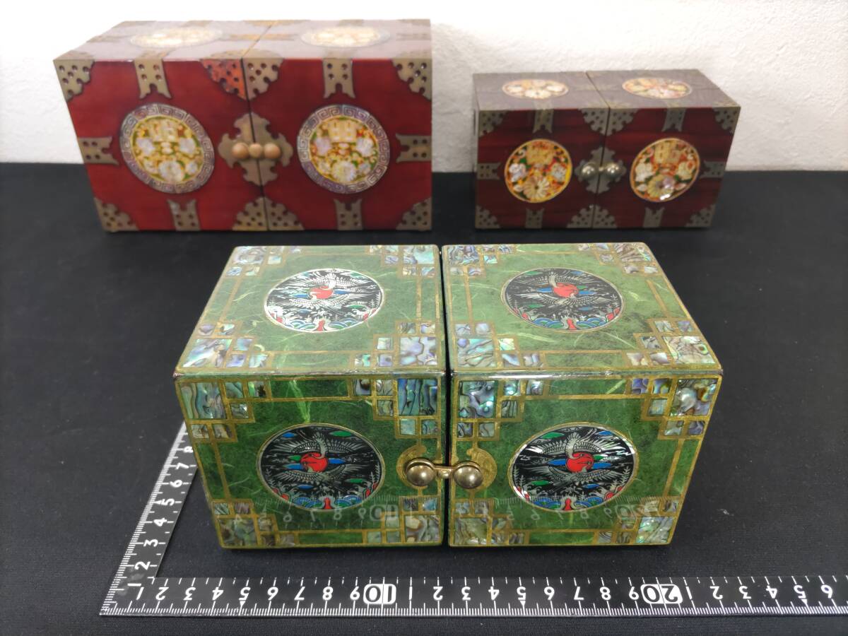 - ■送料無料!■まとめて■螺鈿細工・双子宝石箱■小物入れ■小引き出し■ジュエリーBOX■アクセサリーケース■3点セット!