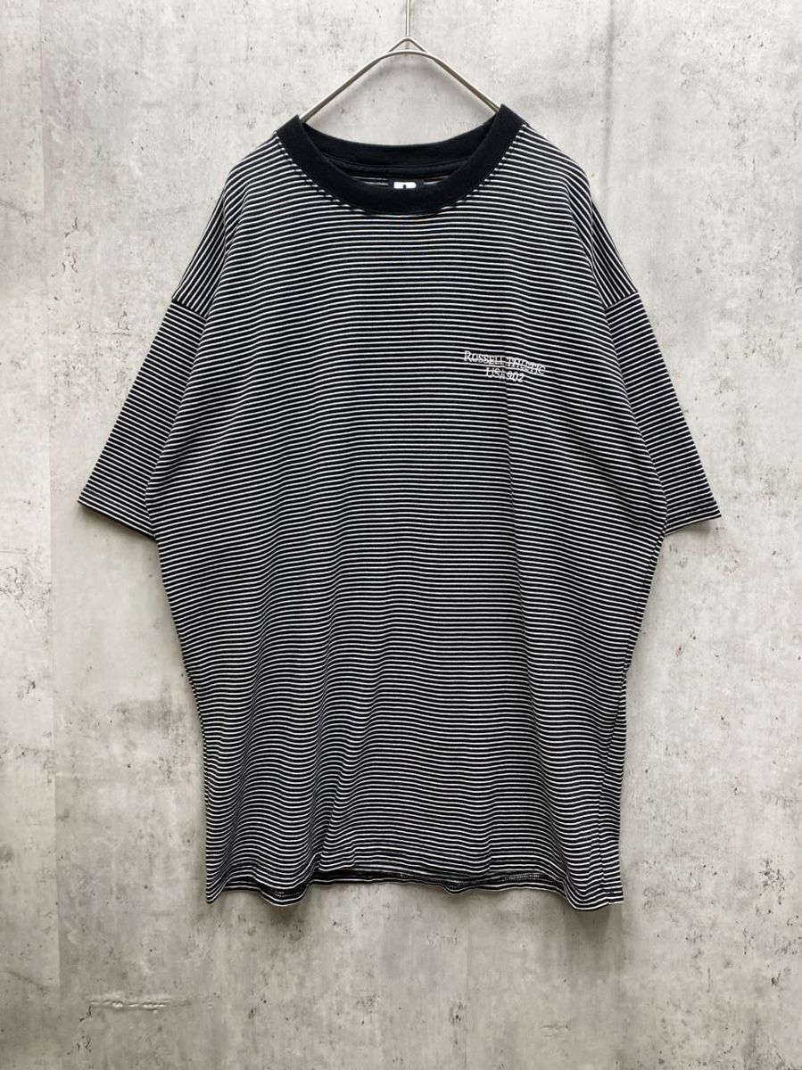- ゆうパケットOK RUSSELL ATHLETIC ラッセルアスレティック ボーダー 半袖 刺繍 Tシャツ カットソー sizeM/白x黒 ■◆