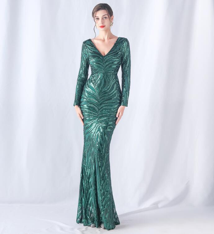 - EY05230 レディースワンピース☆ 大人sexy☆ 可愛い 結婚式ドレス 長袖 緑