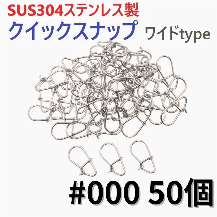 > 【送料150円】SUS304 ステンレス製 強力クイックスナップ ワイドタイプ #000 50個セット ルアー用 防錆 スナップ