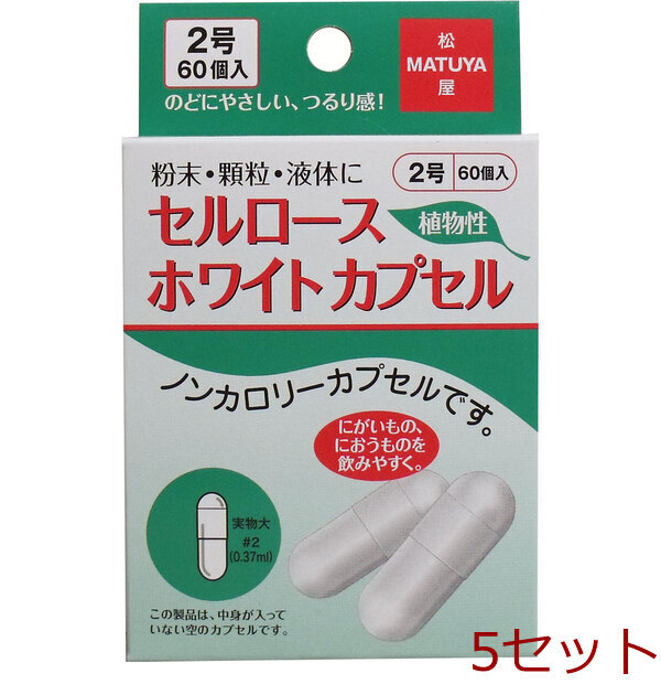 - セルロース ホワイトカプセル 植物性 2号 60個入 5セット