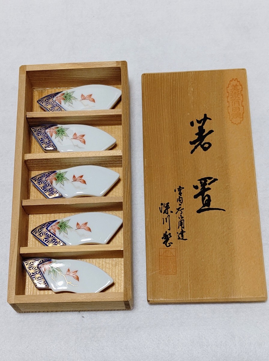 - 宮内庁御用達★深川製 箸置き 扇型 金彩★和食器//深川製磁 紅葉/青紅葉 箸置き