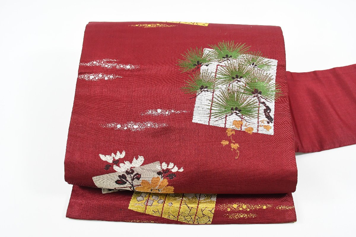 - 名古屋帯 アンティーク 花 霞 帯丈360cm ★着物屋 ne-14994 桜庭呉服店