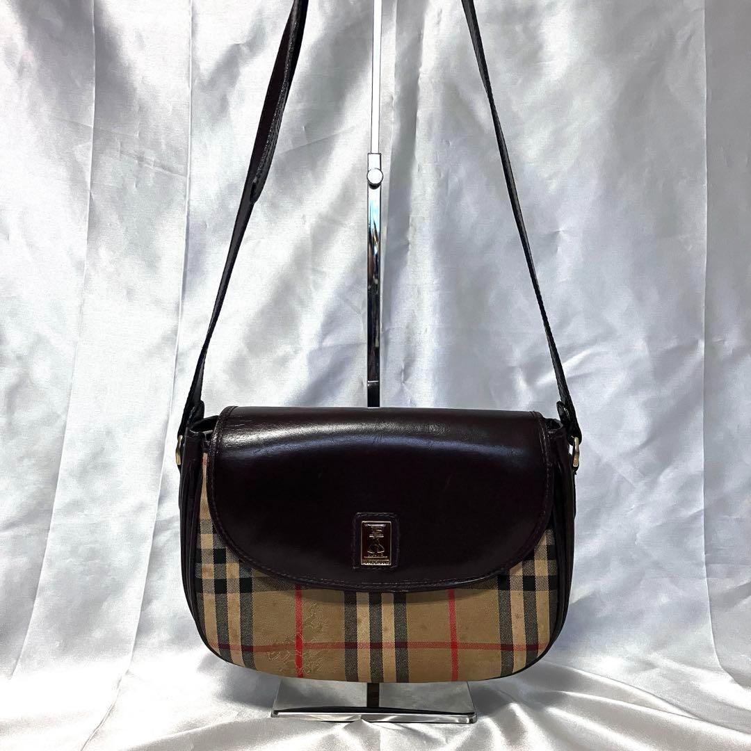 - BURBERRY バーバリー ノバチェック柄 ショルダーバッグ ボルドー ヴィンテージ 調整可能ショルダーストラップ レザー式開閉フラップ