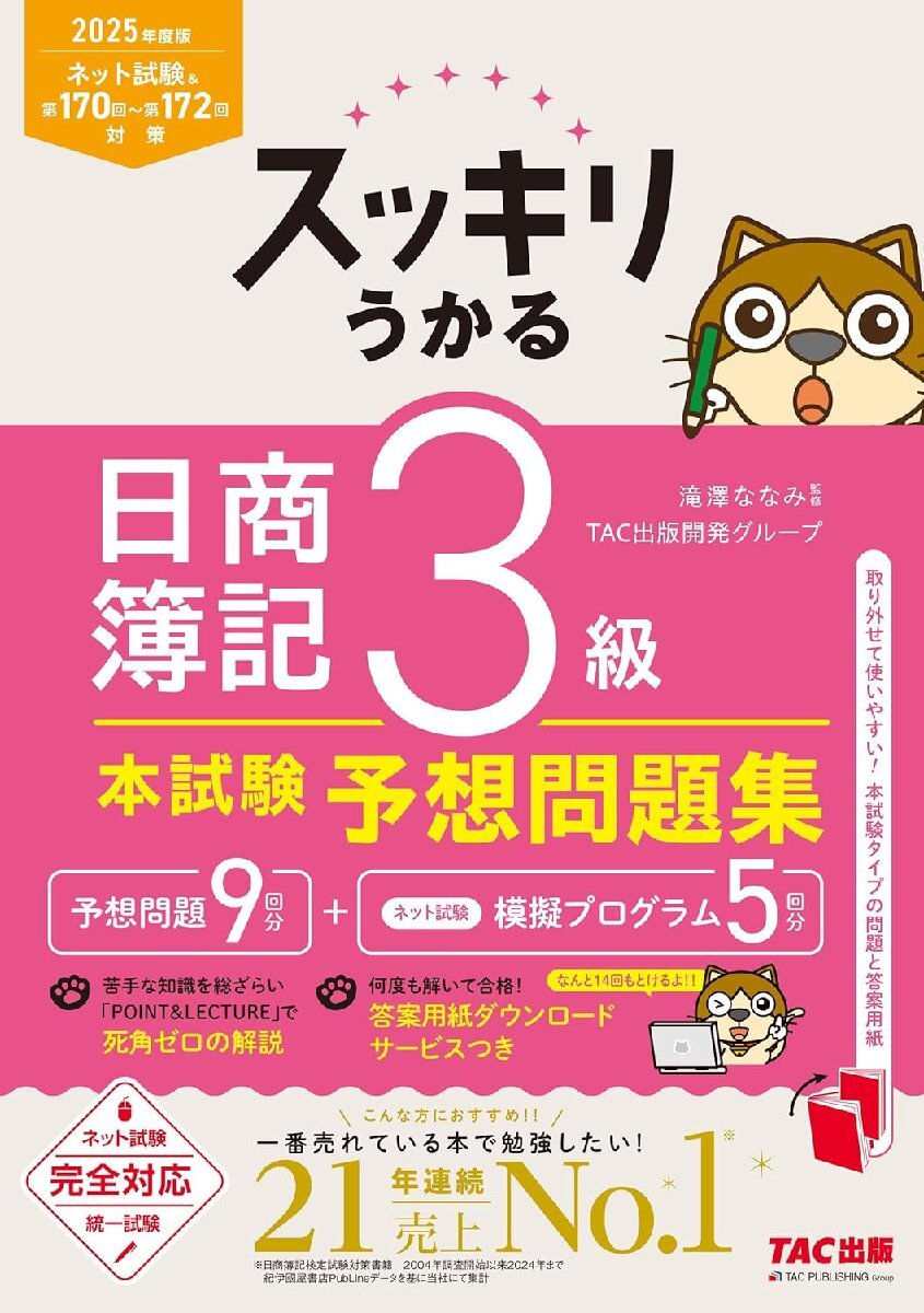 - スッキリうかる 日商簿記 3級 本試験予想問題集 2025年度版[ネット試験・統一試験 完全対応](TAC出版)