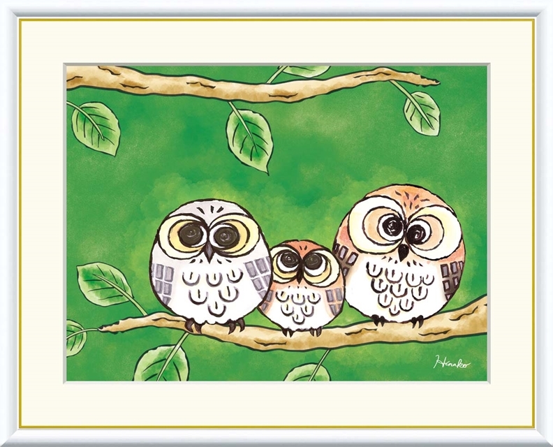- 高精細デジタル額装版画 現代アート Hinako しあわせのふくろう 日菜子 (ひなこ) 「 ともだち 」 サイズ F8号