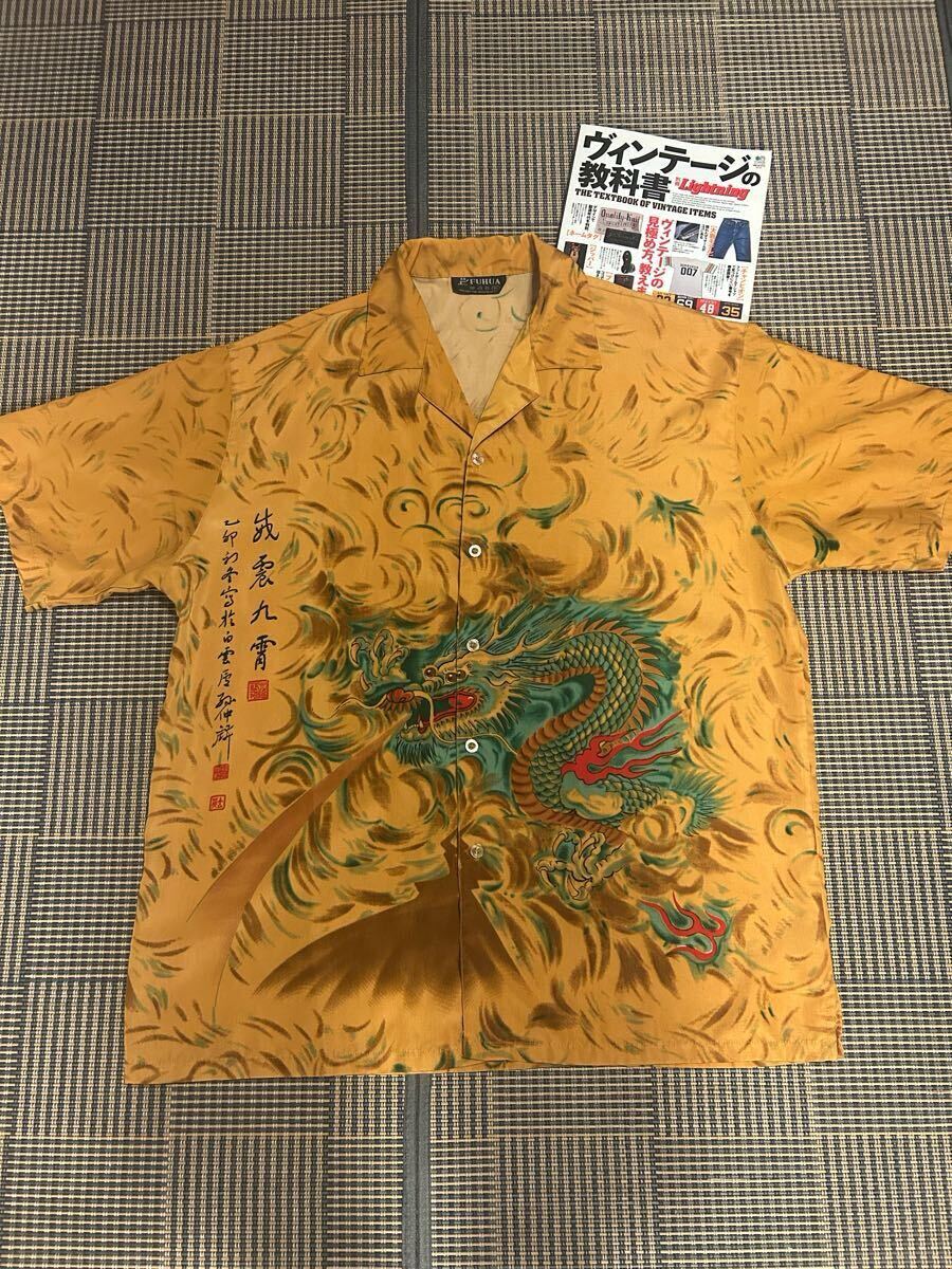 > フーファ/美品/90年代/和柄/半袖シャツ/ビッグサイズ/ドラゴン/FUHUA/漢字シャツ/XL/龍/希少/ヴィンテージ/ポリシャツ/エターナル/東洋エン