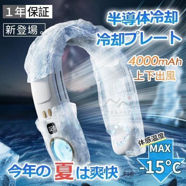 - け扇風機 ネッククーラー 首かけ扇風機 羽なし 冷却プレート 半導体冷却 4000mAh大容量 携帯用扇風機 四風道送風 軽量
