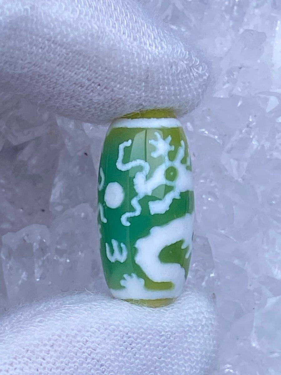- 即決 0524e733 新入荷★【チベット緑玉髄龍神天珠】★ 21x10.5mm(新品)