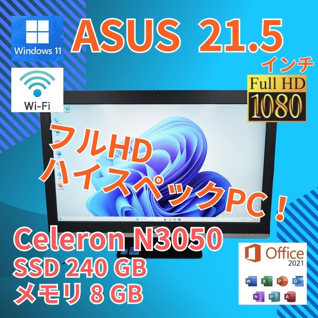 > ASUS 一体型デスクトップPC Vivo AIO V220IB Celeron N3050 windows11 home 8GB SSD240GB カメラあり オフィス (B857)