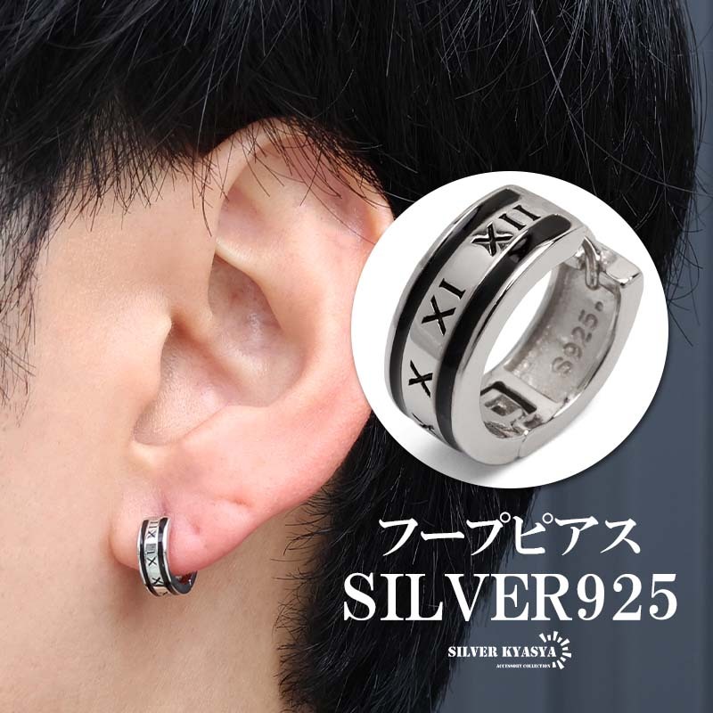 - シルバー925 ローマ数字ピアス ナンバーピアス フープピアス シルバーピアス 小さめ 片耳1点 メンズ 男性 金アレ対応