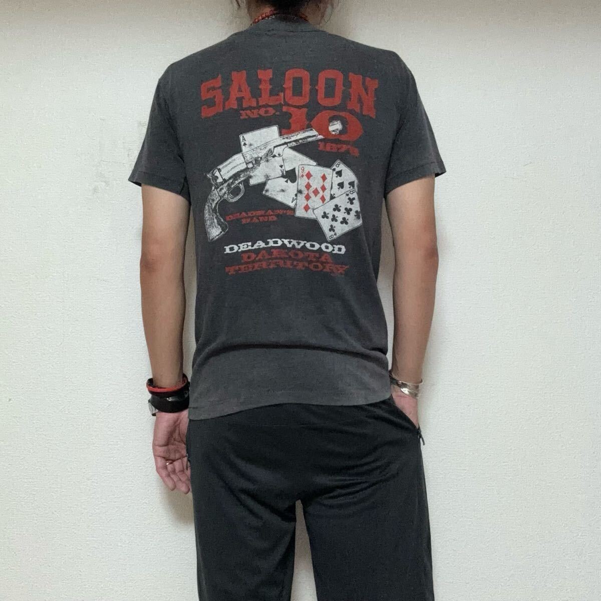 > ビンテージ80s saloon No.10 プリントTシャツ 袖裾シングルステッチ アメカジ系