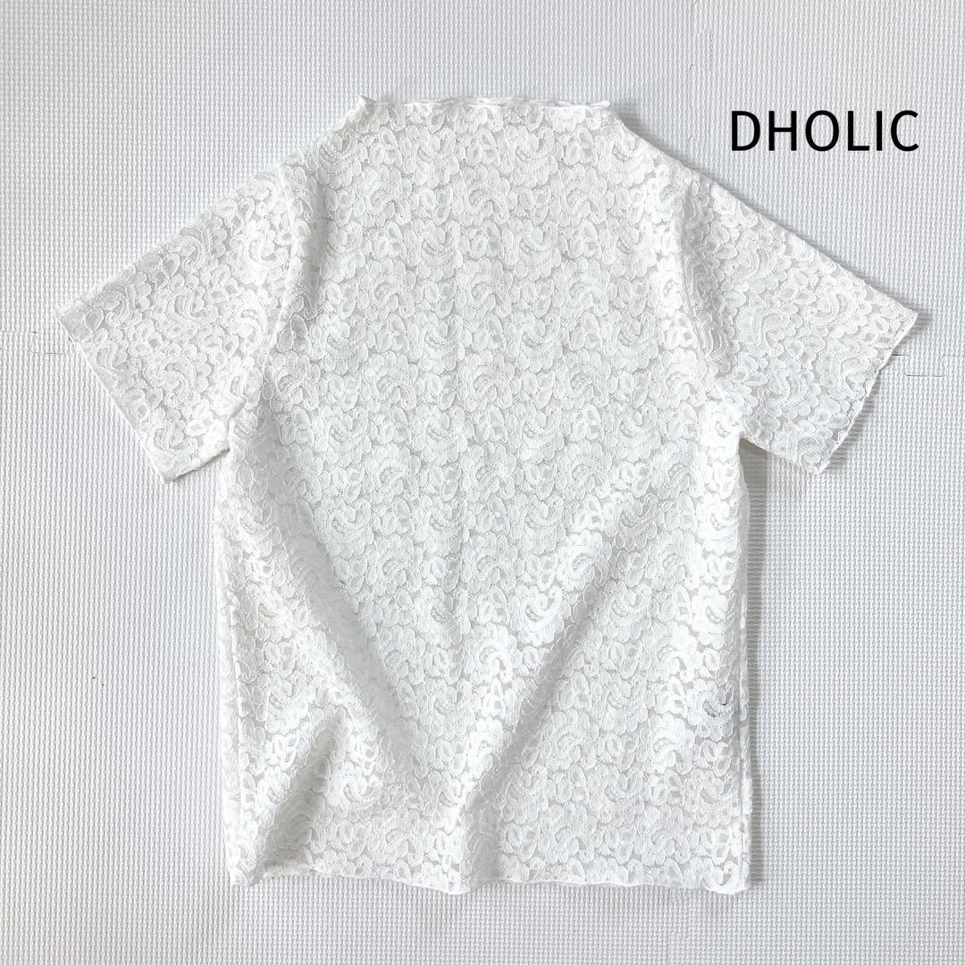 - ディホリック DHOLIC カットソー【M相当】レース 半袖 シアー 白