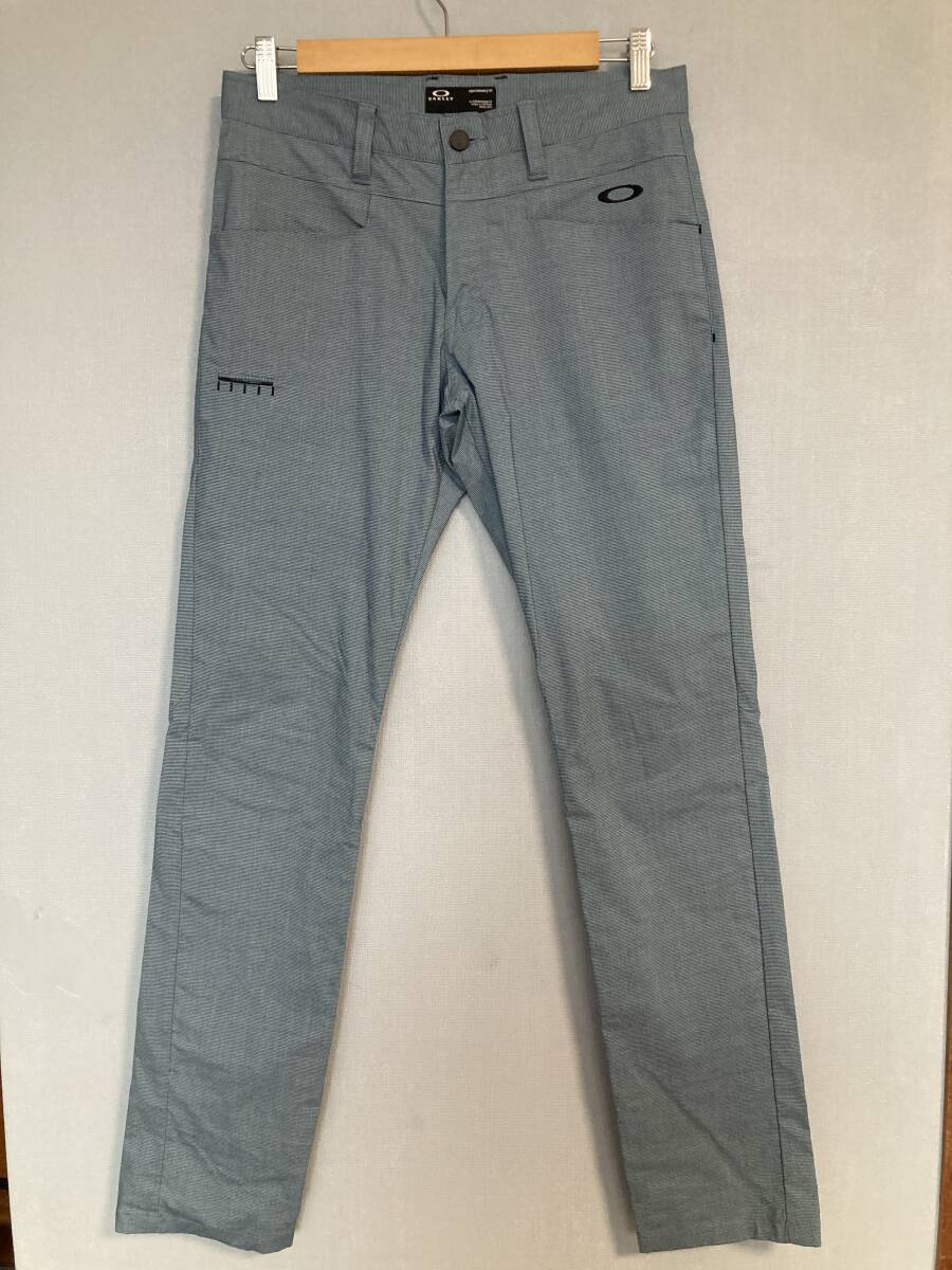 > ★美品 OAKLEY オークリー ストレッチ ゴルフパンツ 32 ブルー系 千鳥格子柄 スカル
