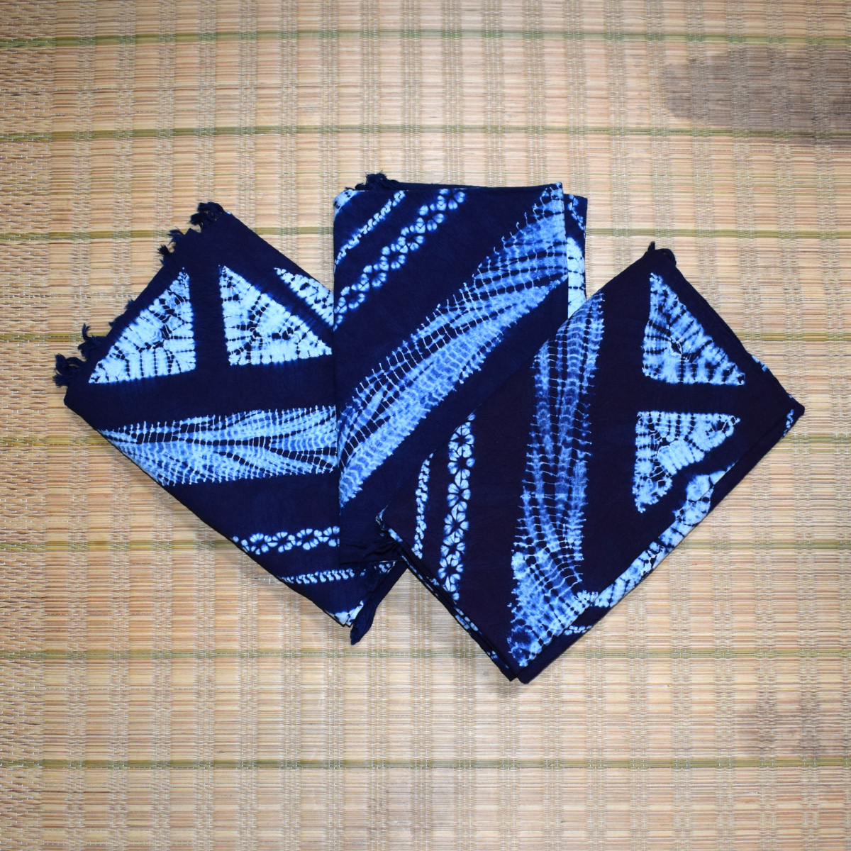 > 藍染 同柄三枚セット テーブルクロス フリンジ タペストリー マルチカバー 横幅約100cm 縦幅約100cm 綿 【kk17-3】