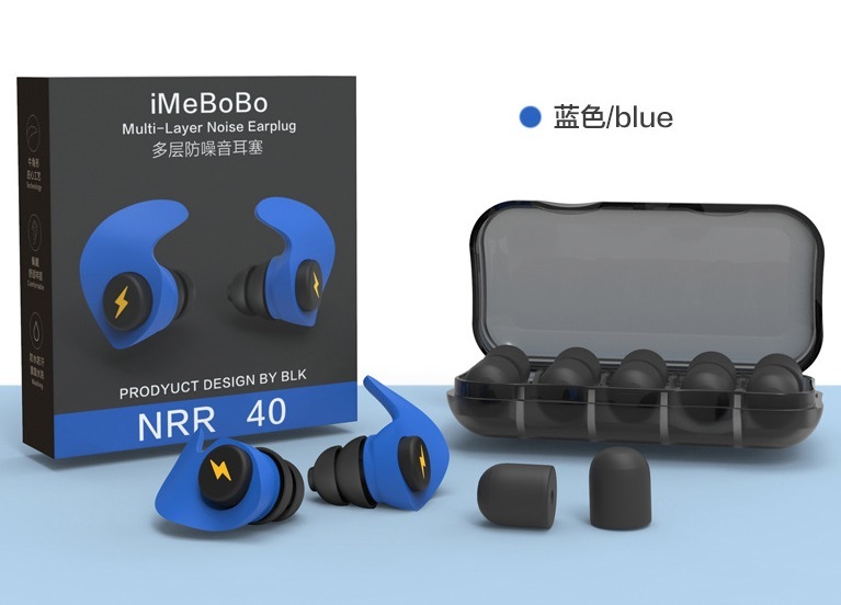 - 送料無料!耳栓 ブルー 専用ケース付き 高性能 睡眠 いびき 遮音 防音 最強 騒音 睡眠用 痛くない 洗える シリコン 遮音性高い 快眠 快適