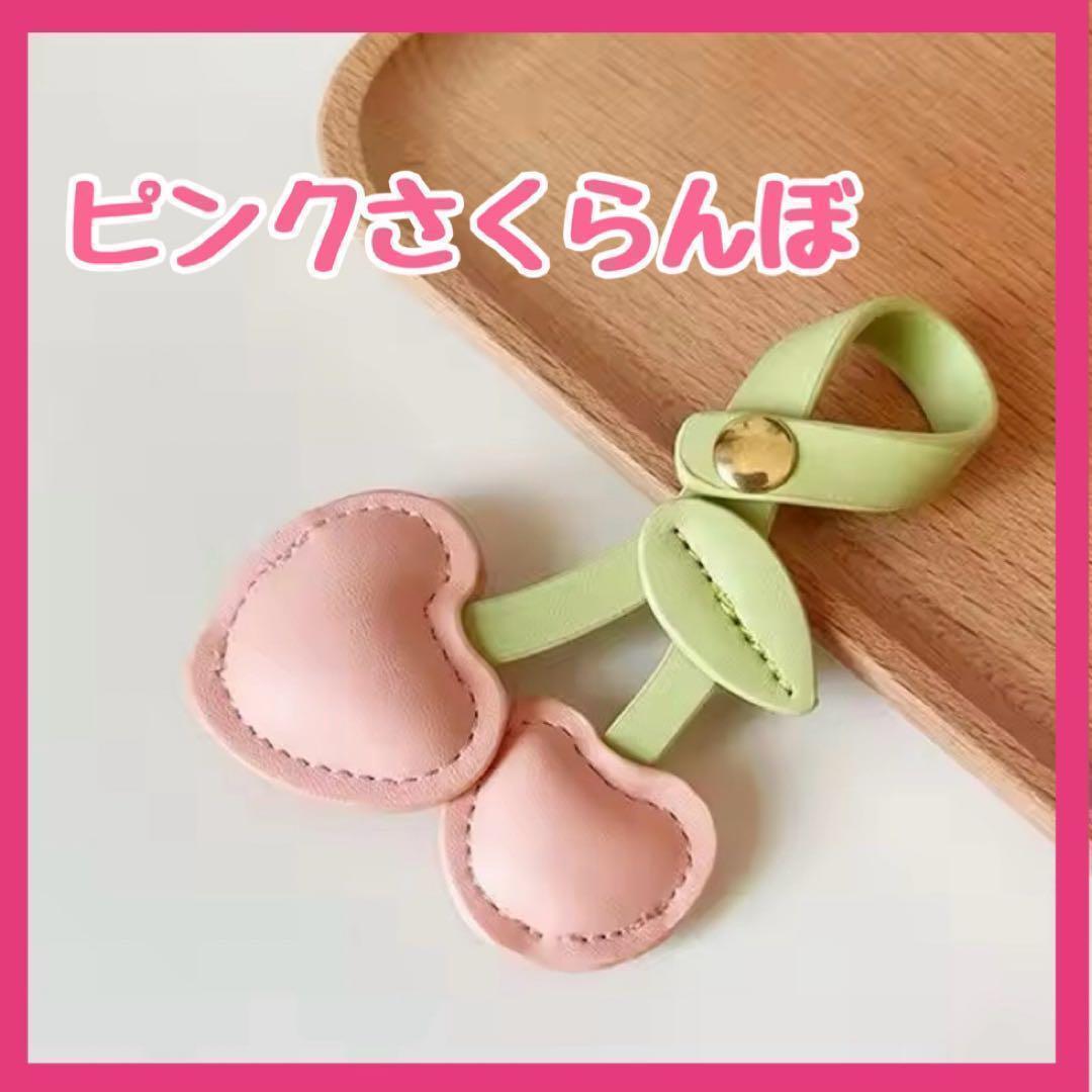 - さくらんぼ バッグチャーム ストラップ PUレザー チェリー ピンク