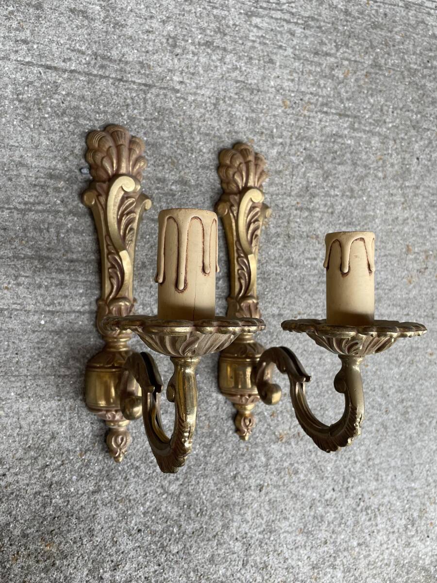 > 12. 2個セット!フランスアンティーク ランプ ブラケット ブロンズ 1灯 キャンドル 照明 ライト ウォール 蚤の市 店舗 什器 カフェ 美容室