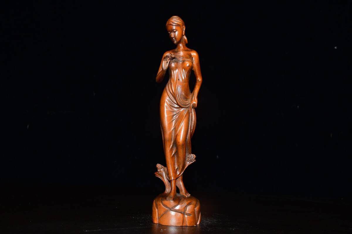 - 『館蔵珍品 黄楊木製 細密彫 仕女 置物 賞物』稀少珍蔵品 古賞物 貴重物品 収蔵品 中国古美術 時代物 古董品