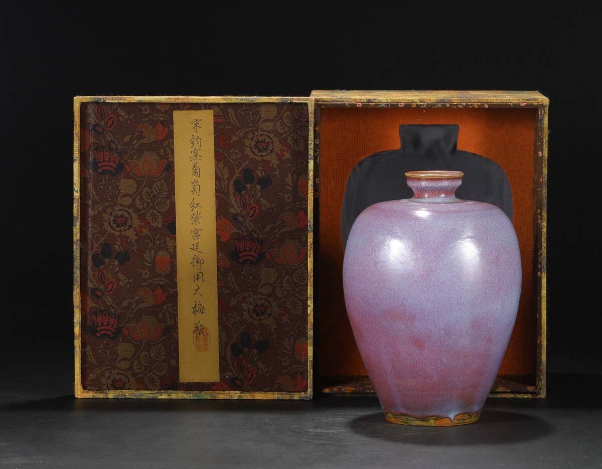 - 北宋 鈞窯 葡萄紅紫釉 宮廷禦用 大梅瓶 乾隆禦題 箱付き ・古陶磁器 ・珍品旧蔵・古賞物・時代物