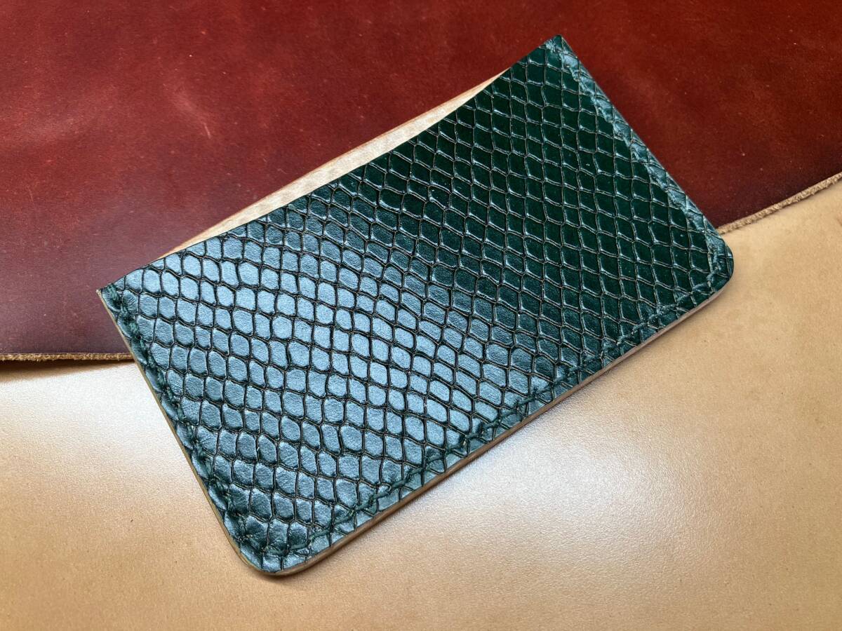 - ■no.1010★カードケース/名刺入れ★ レーデルオガワ社製コードバン★ スネーク型押しグリーン
