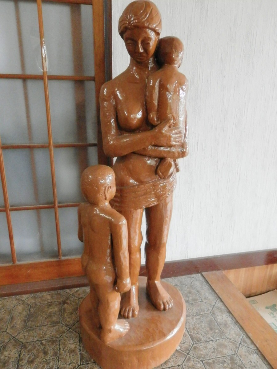 > 木彫 細密彫刻 仏教美術 木造 細密木彫 人物彫刻 親子女性像(110cm)平和の像 木製 彫刻 美術品 オブジェ 置物 県展受賞作家|107723