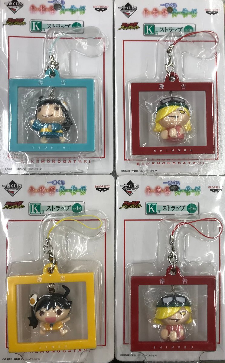 ★一番くじ 化物語×偽物語 K賞 ストラップ4個セット 月火 火憐 忍野忍 西尾維新 フィギュア マスコット グッズ SF56※全種セットではなく(月火1 火憐1 忍野忍2)の計4個セットです。※外箱経年傷み、一部汚れ、パッケージ上部にパンチ跡(穴)有。※全て未開封品ですが長期保管品につき他写真に写らないダメージや記載外の不備がある可能性がございます。予めご了承くださいませ。※上記を全てご理解いただける方のみご入札お願い致します。