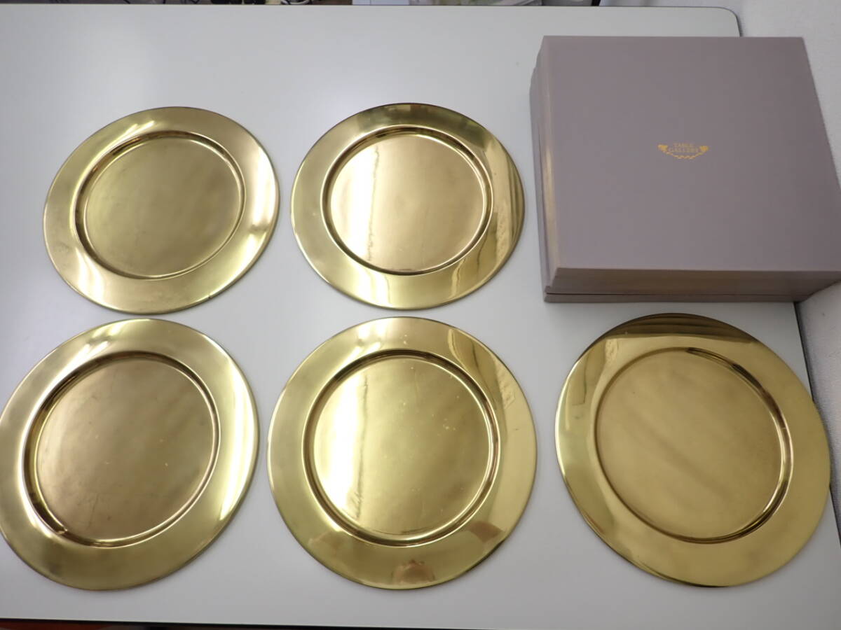 > 190-; TABLE GALLERY 金属製 丸皿 おまとめ5枚 径;約32.3×高さ;1.3cm 西武 ¥9600 シール・元紙箱付き ★