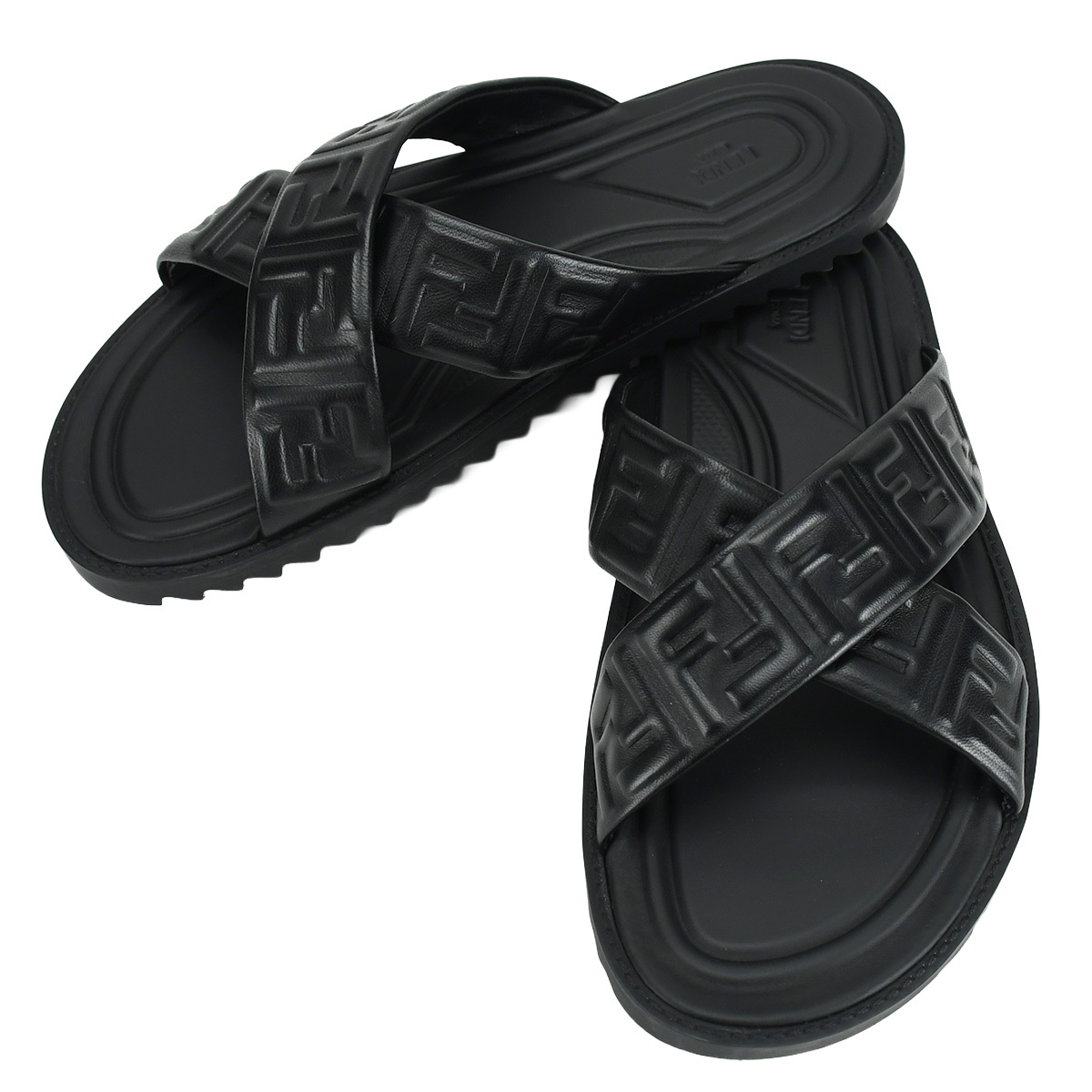 - フェンディ FENDI サンダル FFロゴ クロス スライドサンダル ズッカ柄 7X1222 レザー ブラック 黒 サイズ6 スライダー スリッパ 新品同様