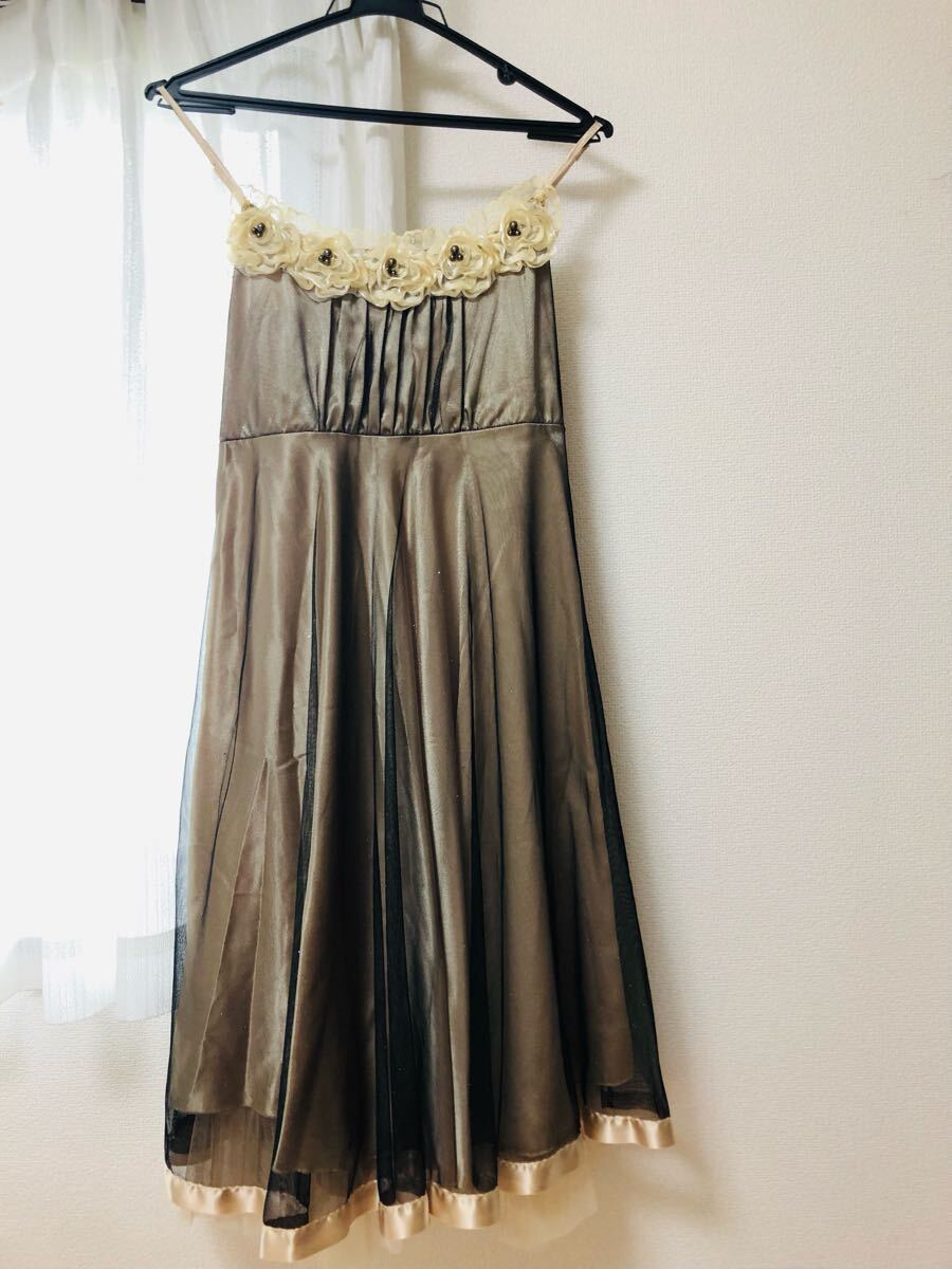 - Mサイズキャミソールワンピース 光沢有るベージュに黒シースルー 花モチーフ付き