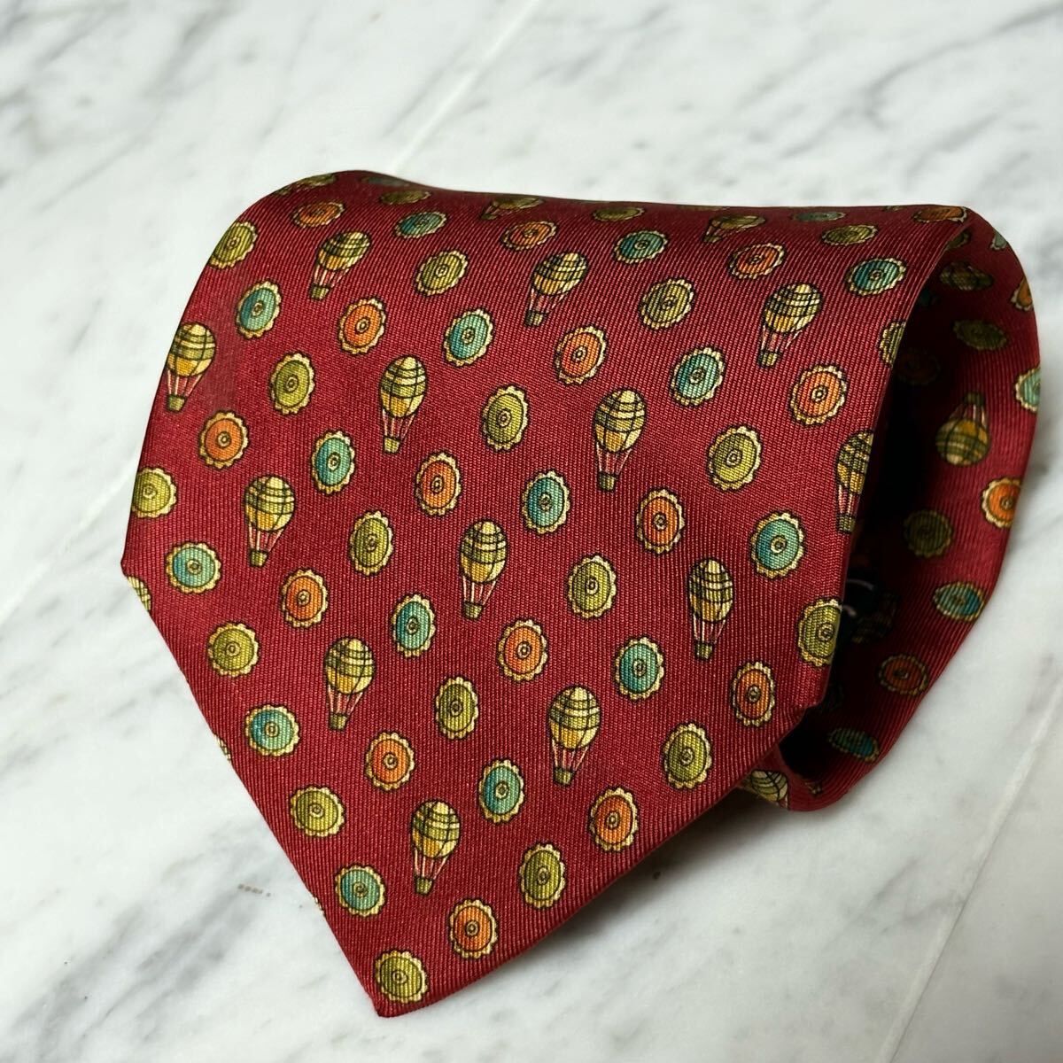 - 770円~ Ferragamo ネクタイ レッド 気球 ドット 総柄 (R4)