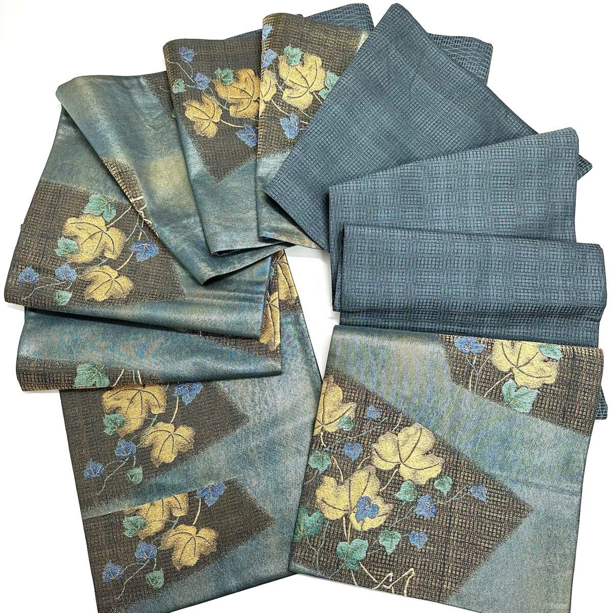 - 【七福】c575 逸品 高級品 正絹 袋帯 六通 金糸 ラメ 刺繍 豪華