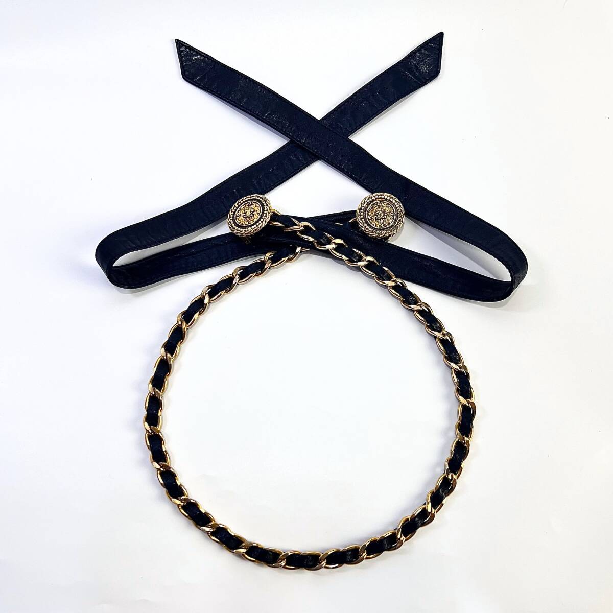 - CHANEL シャネル ココマーク リボン チェーン ベルト 箱 GP ブラック 141cm レディース ファション小物 アクセサリー
