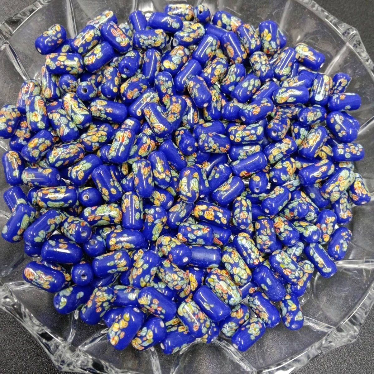 > ☆未使用 約190個 大量 チェコ トンボ玉 ガラスビーズ 359g 12×7mm ブルー ネイビー 大粒 ヴィンテージ ハンドメイド アクセ S-340