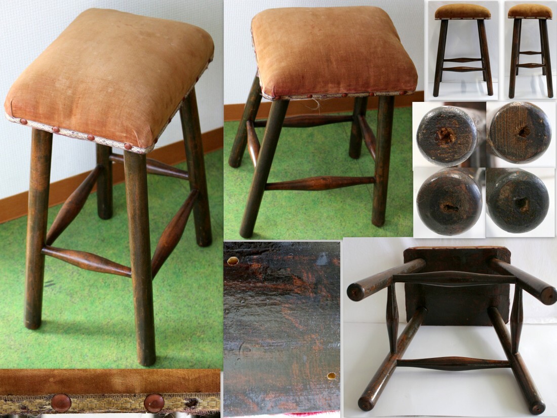 > 1356/中古・2カ所虫食いの跡あり!/木製 角椅子 ★ミシン椅子.角スツール.チェア.アンティーク.レトロ.ビンテージ
